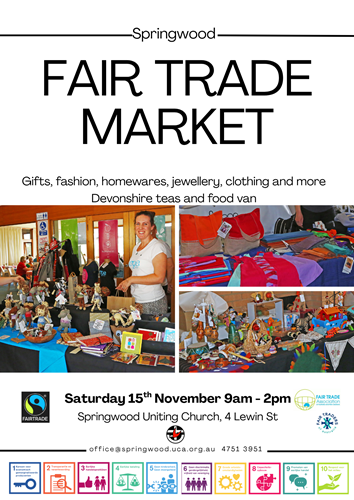 The 2025 Fair Trade Market is on 15 November 2025 from 9am - 2pm.